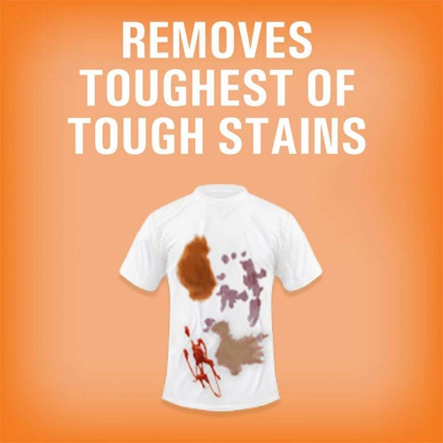 Removes various tough stains such as chocolate, oil, rasam, curry, soup, ketchup and beverages